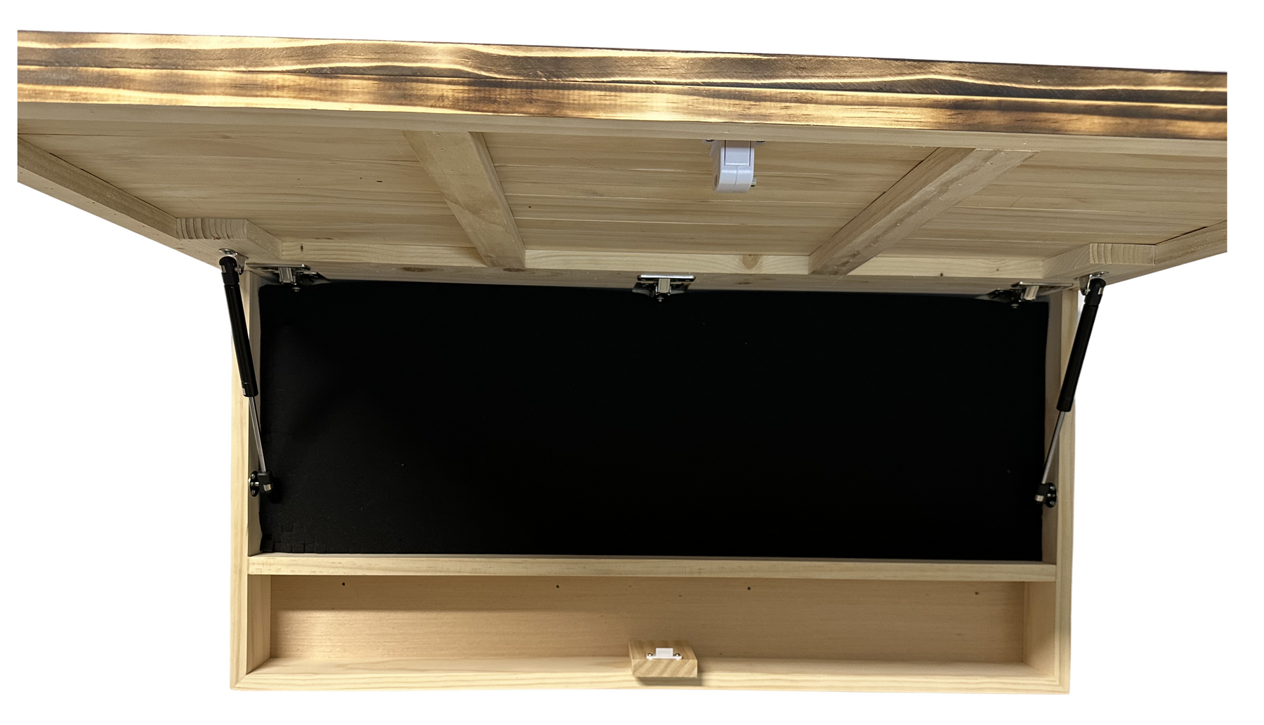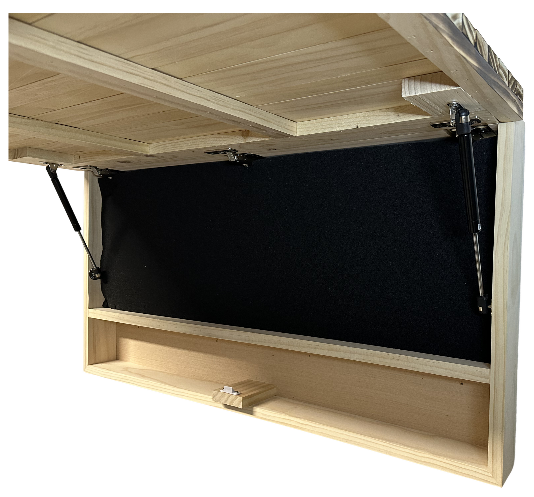 Securely store your firearms and home defense gear inside the Large Burnt American Flag Hidden Gun Storage Cabinet. This handcrafted American flag is made from burnt wood and finished with a high-gloss seal, creating a bold and patriotic statement in any room. Our decorative Burnt American Flag Gun Case is discreet, wall-mountable, and designed to keep your firearms and tactical gear securely stored yet easily accessible when needed.