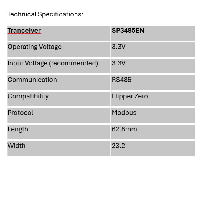 The Flipper Zero Add-on: Modbus, allows Flipper Zero to interact with industrial Modbus RTU networks. Featuring an SP3485EN transceiver, this module makes activities such as monitoring, analysis (sniffing), and packet injection easy.