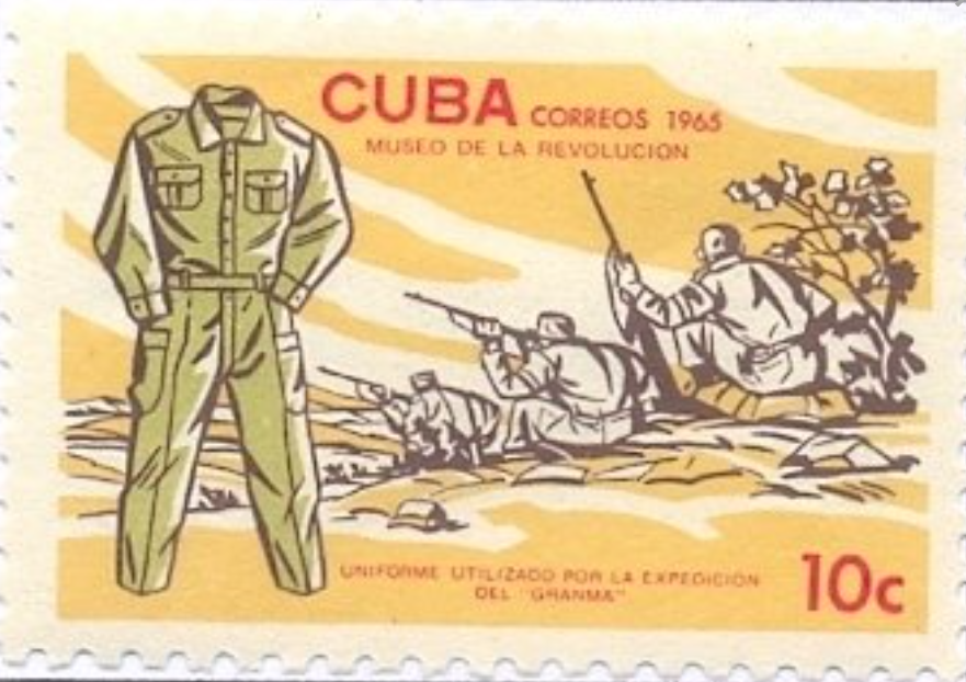 The 10-centavo stamp features a uniform as worn by the 82 men who landed in Cuba on the yacht Granma in 1952.
