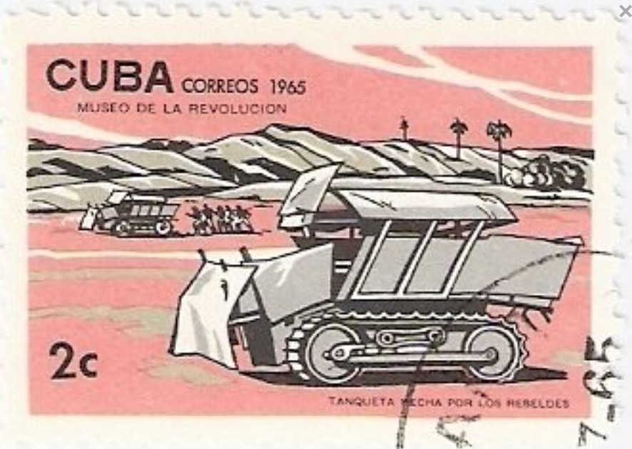 The 2-centavo stamp features an improvised "tankette" armored vehicle.
