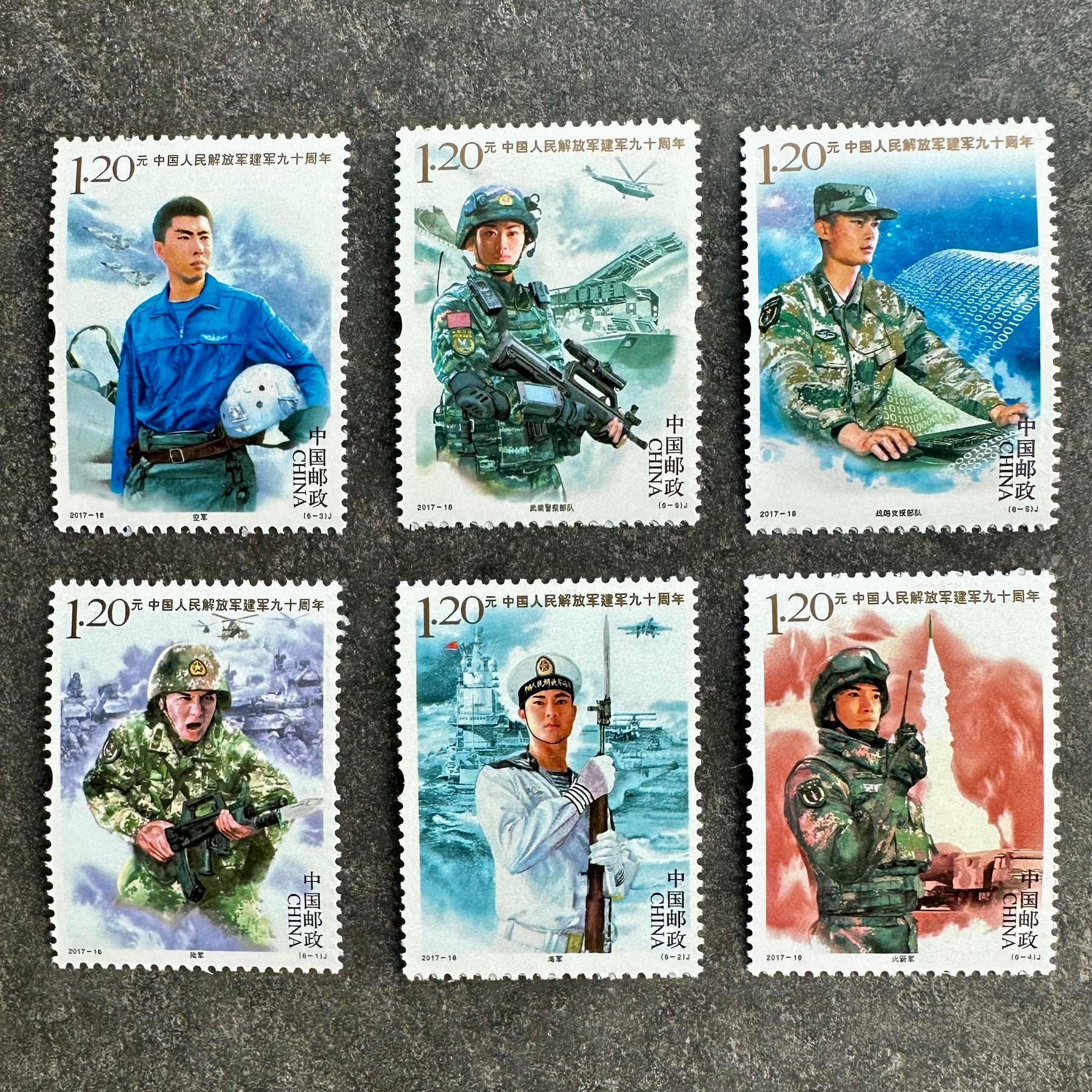 These six stamps are each valued at 1.20 Chinese renminbi yuan and feature the different branches of the Chinese armed forces: The People’s Liberation Army, the PLA Navy, the PLA Air Force, PLA Rocket Forces, PLA Strategic Support, and PLA Armed Police Force.